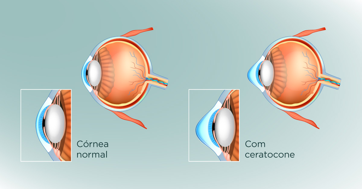 Esta é uma condição oftalmológica na qual a córnea, a camada transparente que cobre a parte frontal do olho, começa a se afinar e se curvar de forma anormal. Isso resulta em uma protuberância cônica em vez da forma arredondada natural da córnea.